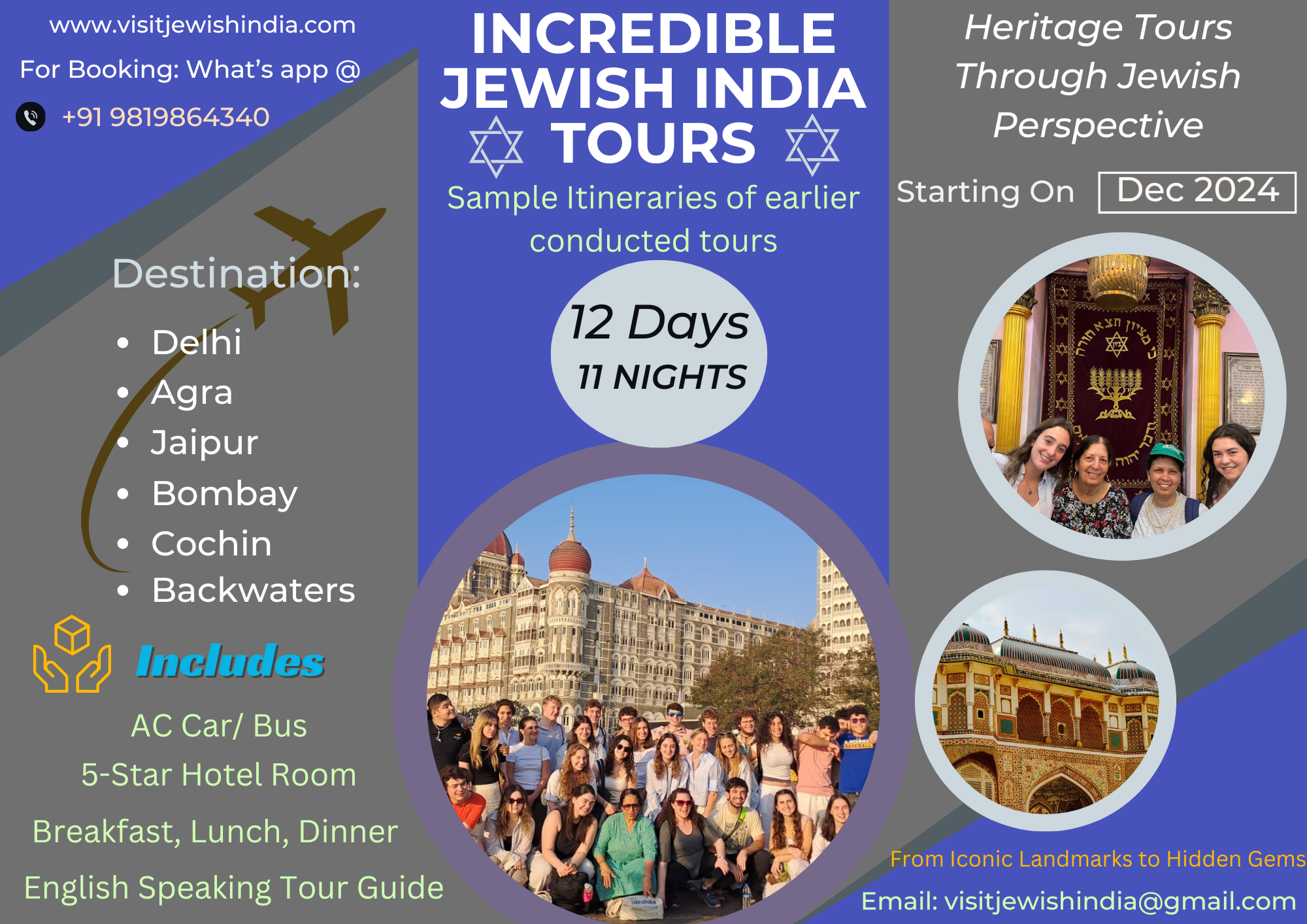 Don’t miss this exclusive opportunity to embark on an unforgettable journey through the incredible Jewish heritage of India. Secure your spot today and prepare to be enchanted by the beauty, history, and culture that await you on this extraordinary 12-days tour. Experience the magic of India like never before – book now and create memories to last a lifetime.